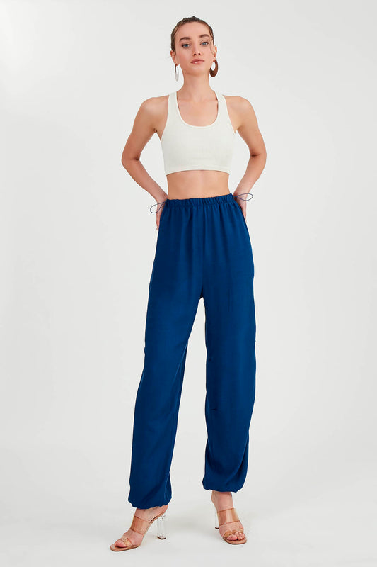 STYLISH VISCOSE LINEN TROUSERS WITH ELASTANE WAIST AND ANKLES