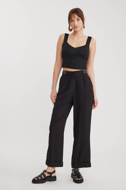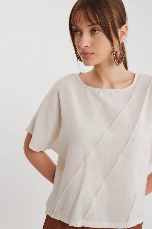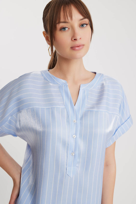 BLOUSE WITH LOW SHOULDER BUTTON AND GLOSSY SATIN LINE