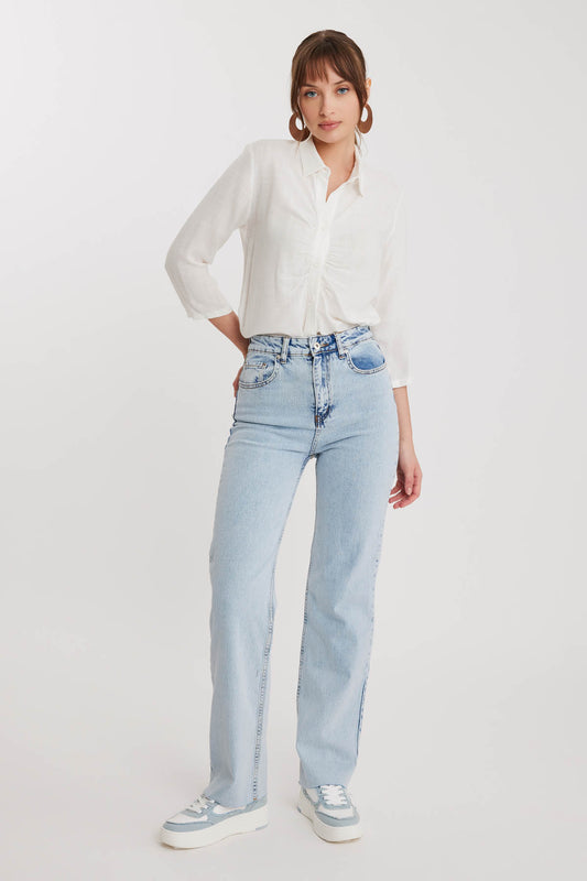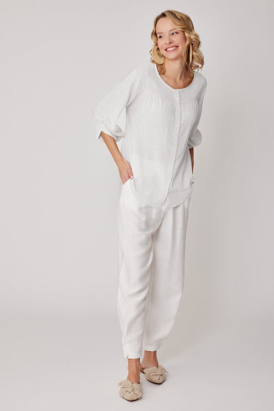VISCOSE LINEN BLOUSE WITH FRONT BUTTON