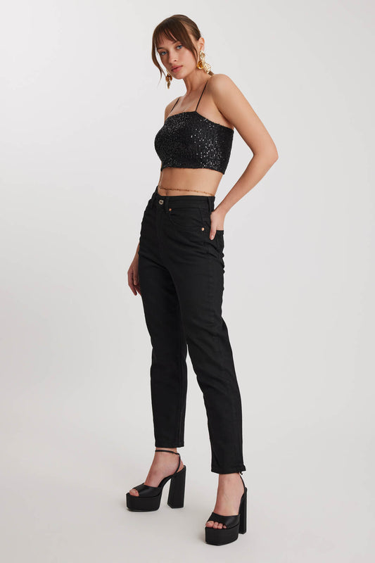 STRAIGHT FIT JEANS BLACK WITH SUTURES