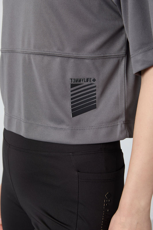 Dark Grey Polyester Breathable Textured Thin Flexible Oversize Fit Performance Women's T-Shirt - 97284