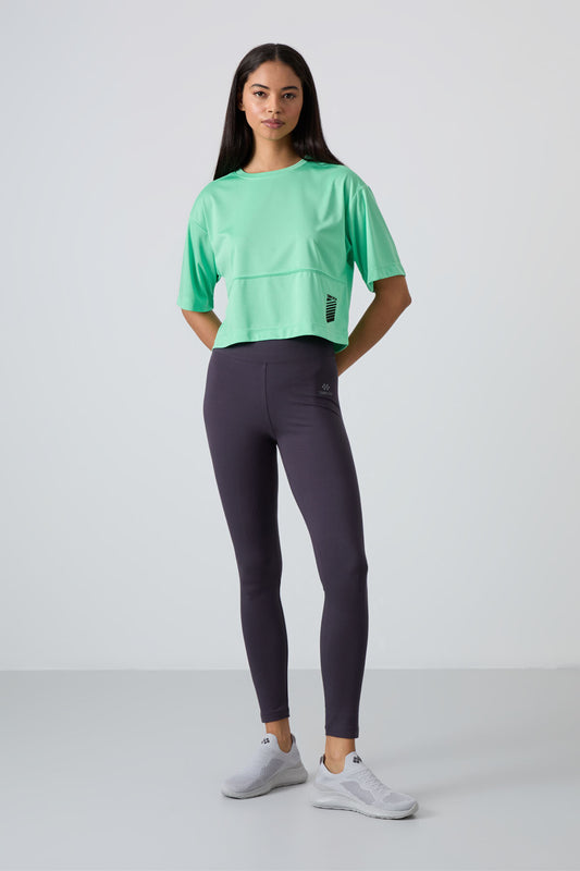 Mint Green Polyester Breathable Textured Thin Flexible Oversize Fit Performance Women's T-Shirt - 97284