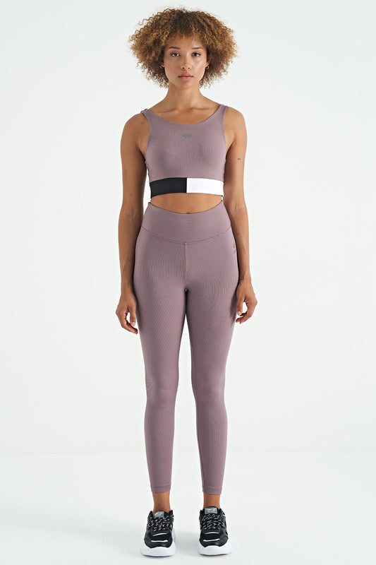 Dried Rose Color Block Logo Print Narrow Fit Striped Women's Bustier - 97275