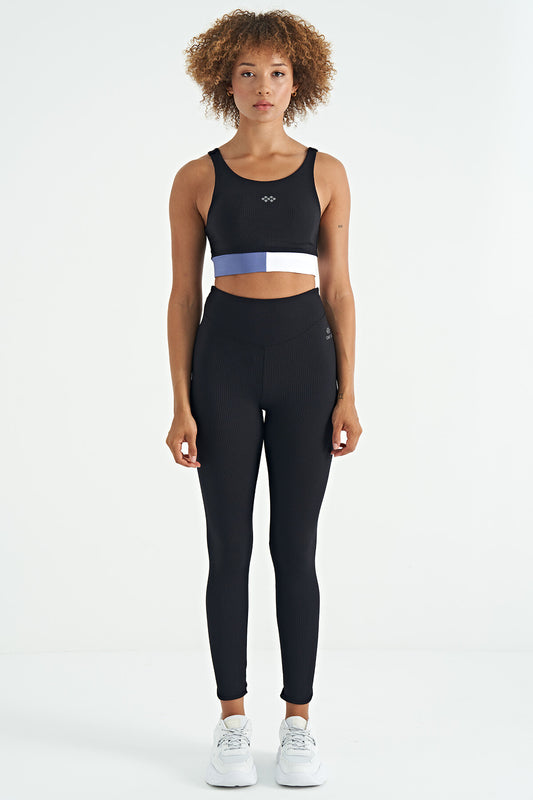 Black Color Block Logo Printed Narrow Fit Striped Women's Bustier - 97275
