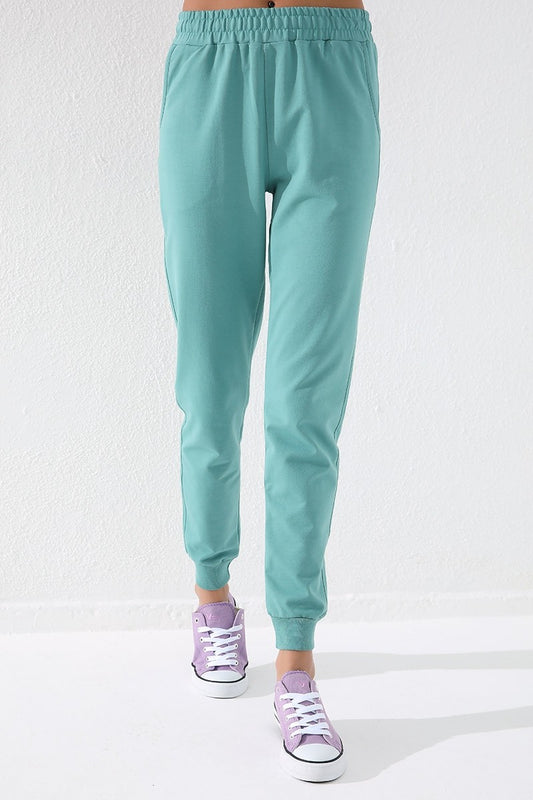Mint Green High Waist Jogger Comfort Fit Cuffed Women's Tracksuit Bottom - 94561