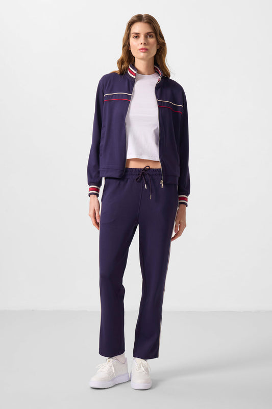 Dark Purple Soft Textured High Collar Oversize Elastane Women's Tracksuit Set - 95349