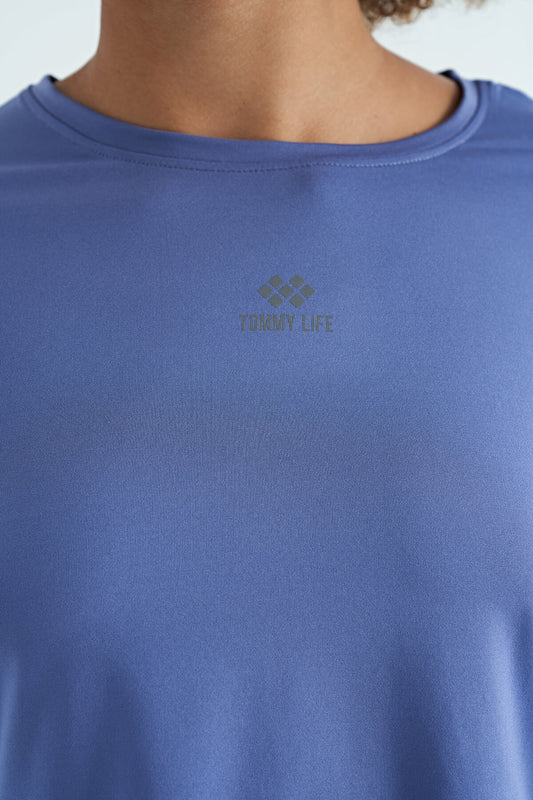 Indigo Color Block Logo Printed O Collar Slim Fit Women's Crop T-Shirt - 97270