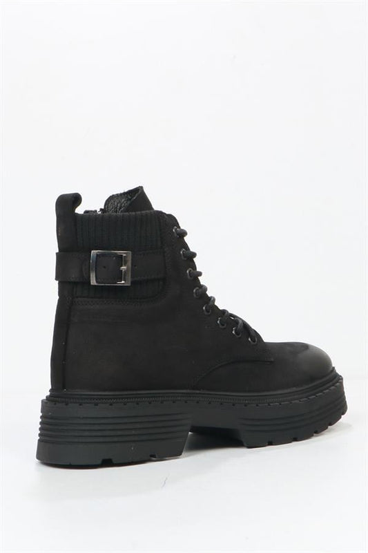 Black Leather Outdoor Women's Boots