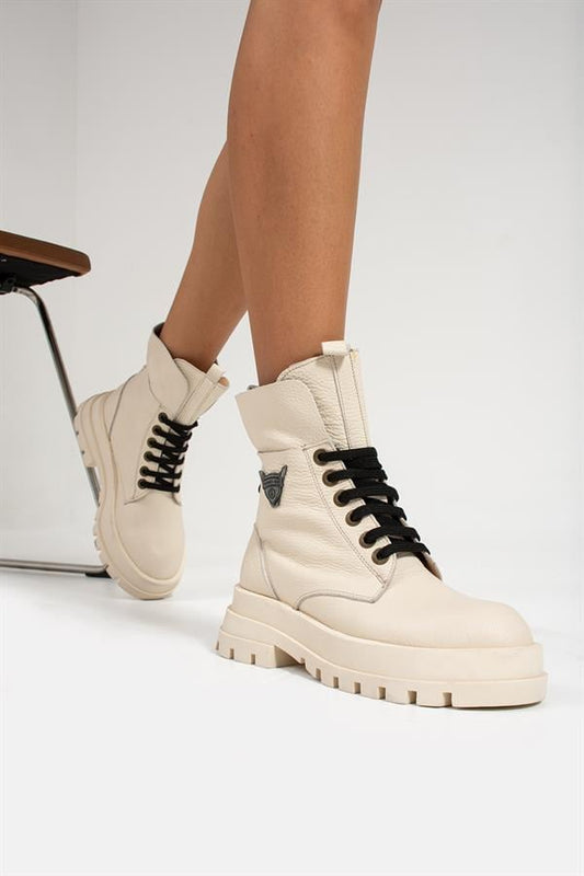 Genuine Leather Beige Women's Boots