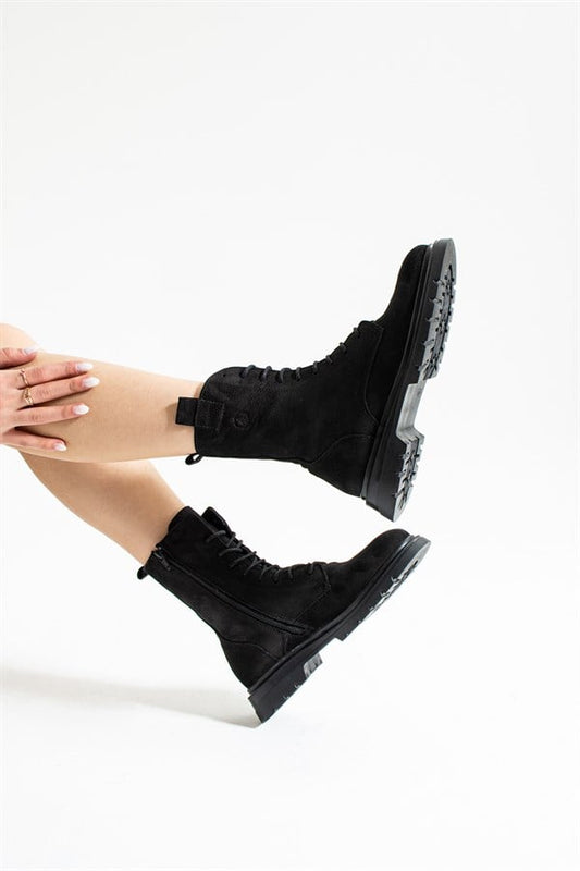 Real Leather Black Outdoor Women's Boots