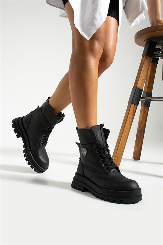Genuine Leather Black Female Boots