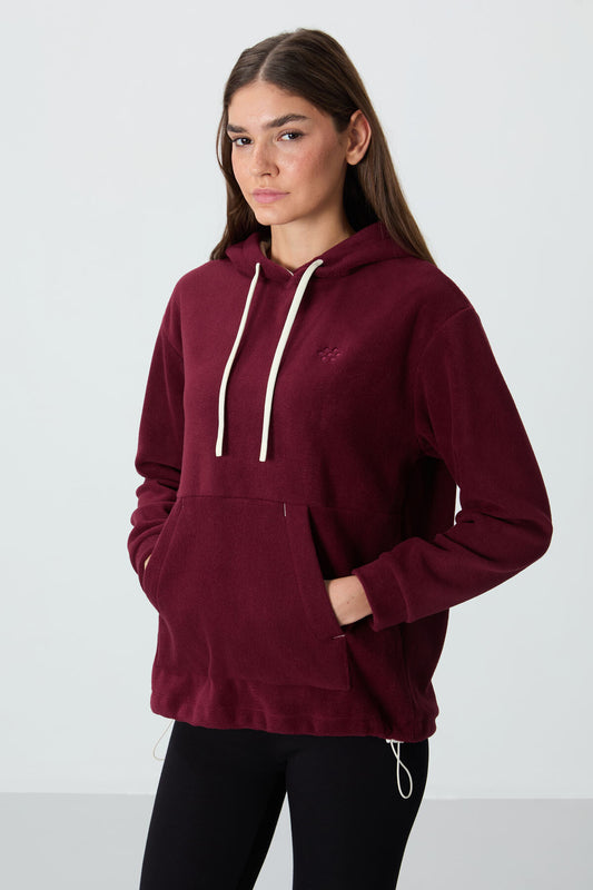 Thick Soft Textured Hooded Oversize Embroidered Fleece Women's Sweatshirt - 97292