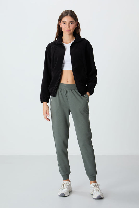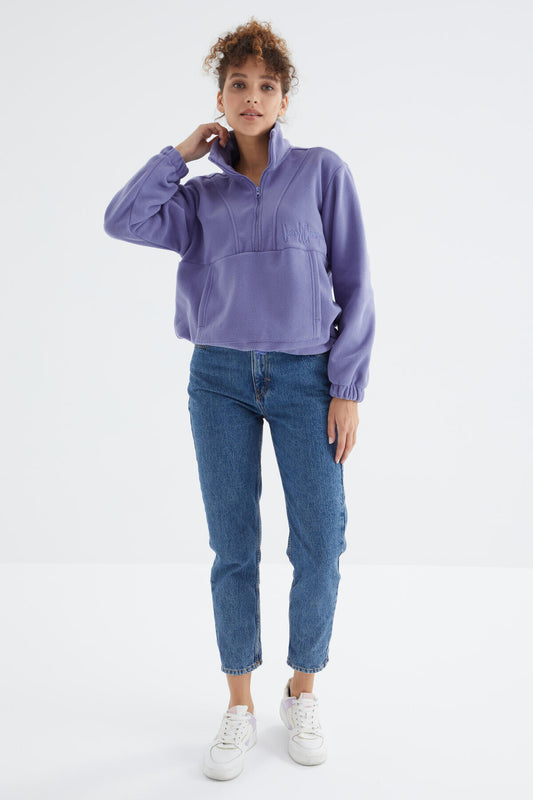 Straight Collar Zippered Comfort Fit Women's Fleece Sweatshirt - 97173