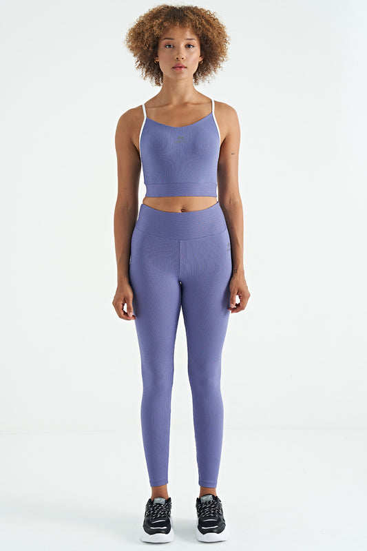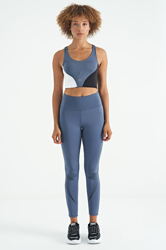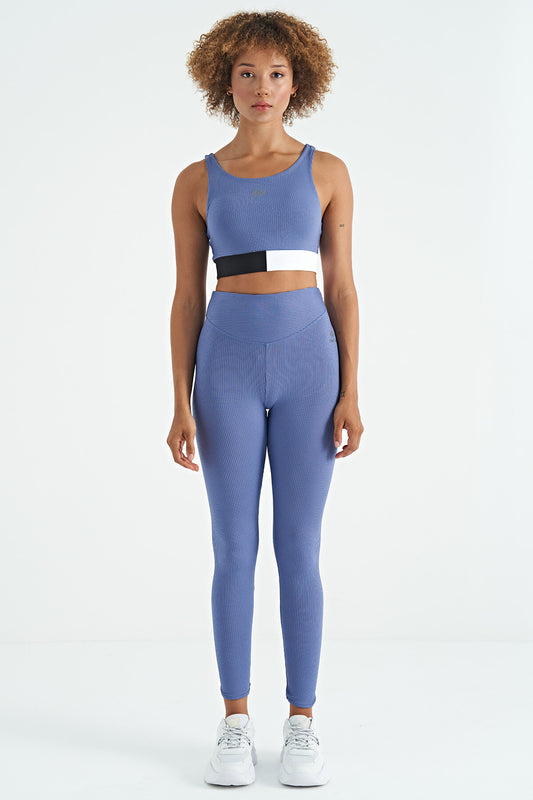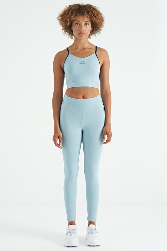 Light Blue Cross-Back Detailed Logo Print Slim Fit Striped Women's Bustier - 97274