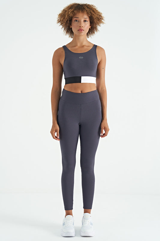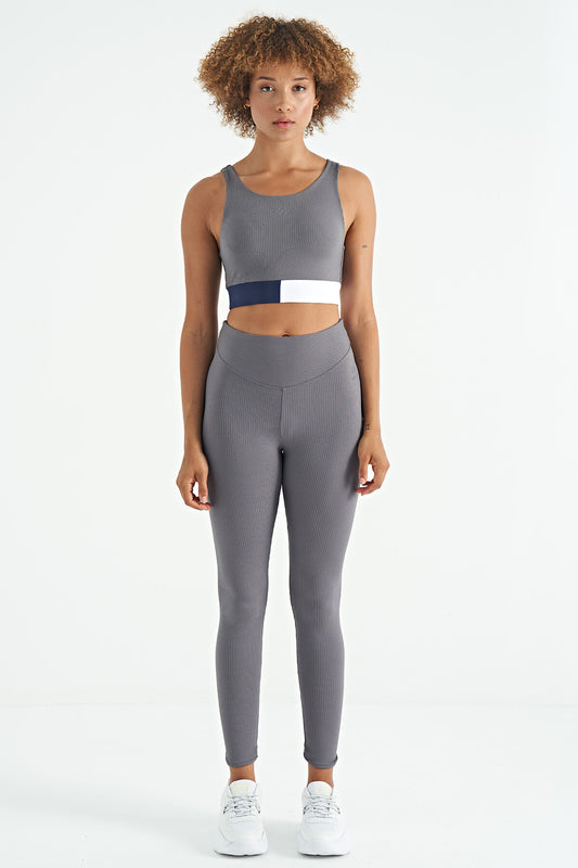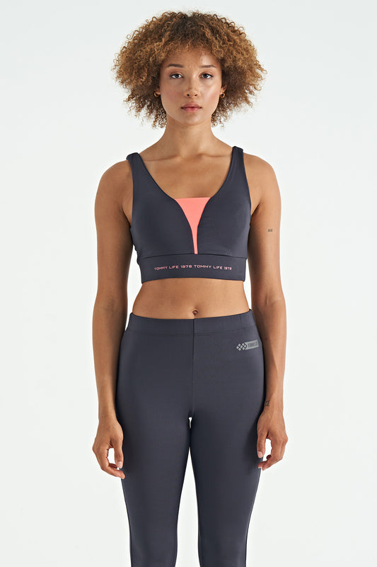 Dark Grey Color Block Logo Print Narrow Fit Striped Women's Bustier - 97275