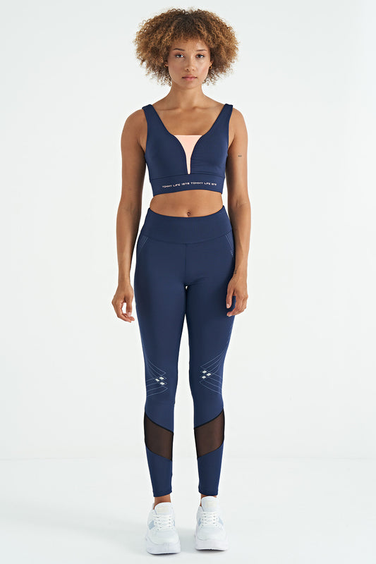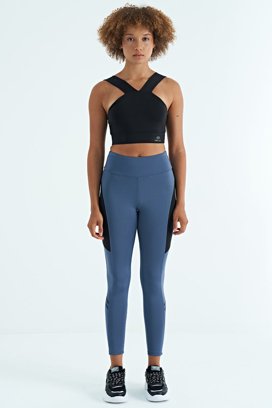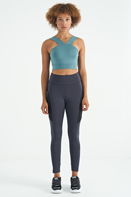 Petrol Print Logo Color Block Crossbody Detailed Diver Fabric Women's Bustier - 97260