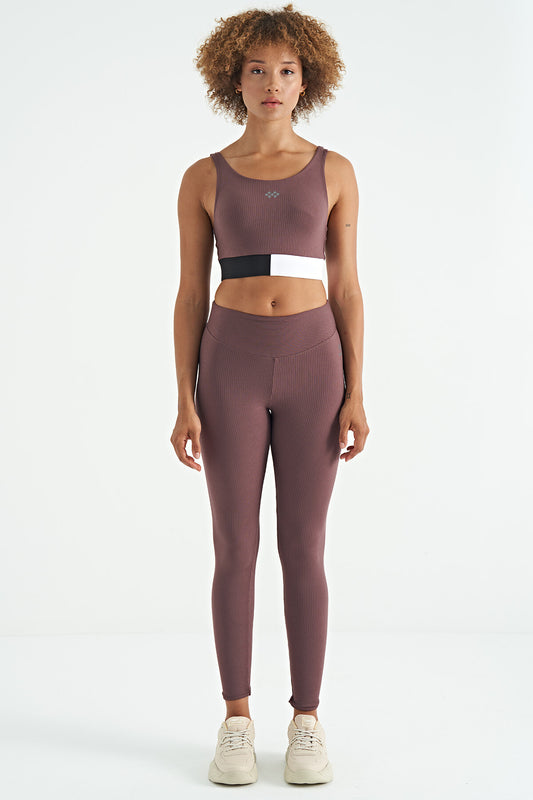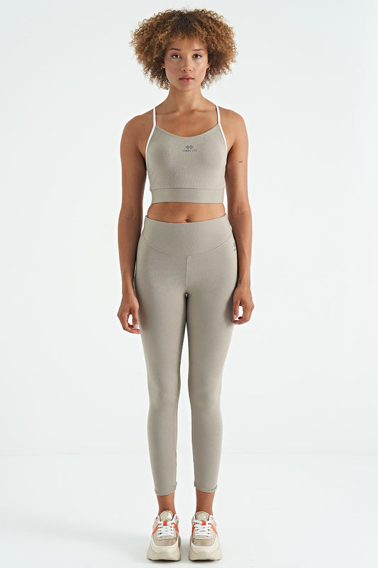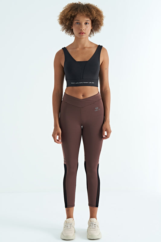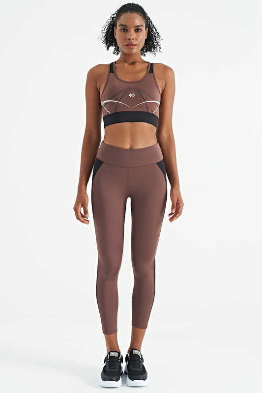 Brown Front Back Print Detailed U Collar Slim Fit Women's Sports Bustier - 97252