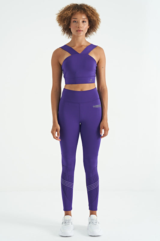 Dark Purple Logo Printed Slim Fit Scuba Fabric Women's Bustier - 97259