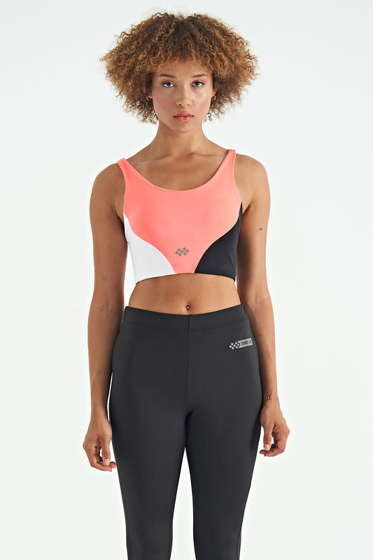 Neon Pink Logo Printed Color Block Crossbody Detailed Diver Fabric Women's Bustier - 97260