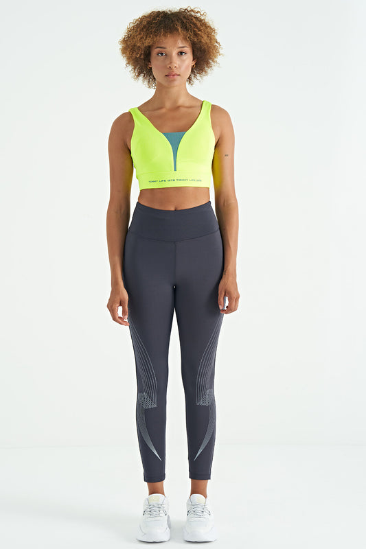 Dark Gray Crossbody Detailed Logo Print Slim Fit Striped Women's Bustier - 97274