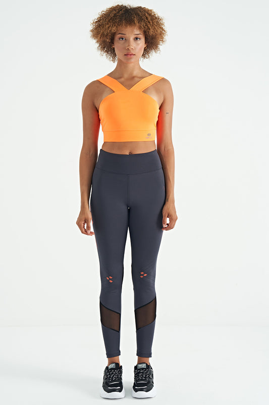 Neon Orange Logo Printed Slim Fit Scuba Fabric Women's Bustier - 97259