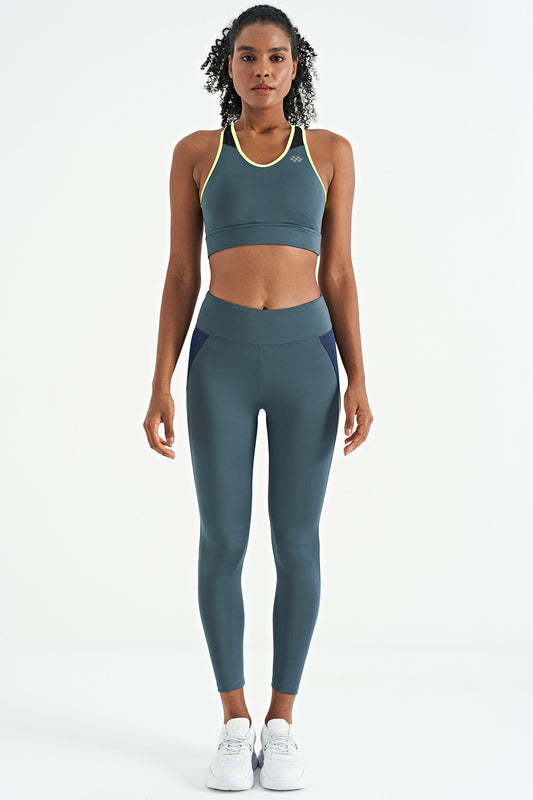 Forest Green Color Block Back Print Detailed Slim Fit Women's Bustier - 97253