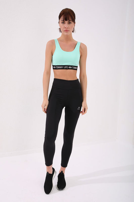 Turquoise Cross Back Detailed Slim Fit U Neck Padded Women's Sports Bra - 97121