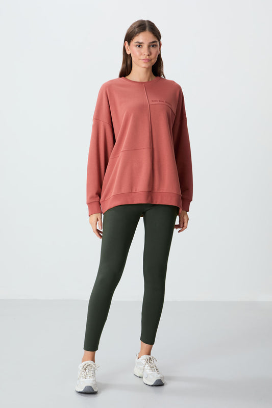 Compact Cotton Thick Smooth Textured O Collar Oversize Fit Women's Sweatshirt - 97288