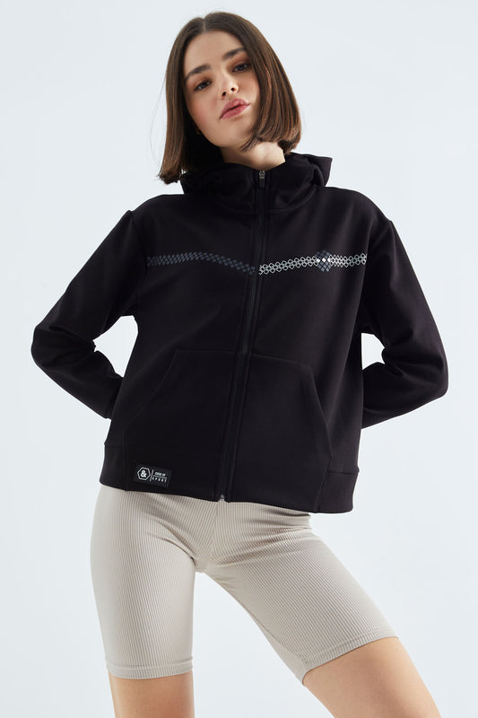 Black Hooded Zippered Women's Sweatshirt - 97277