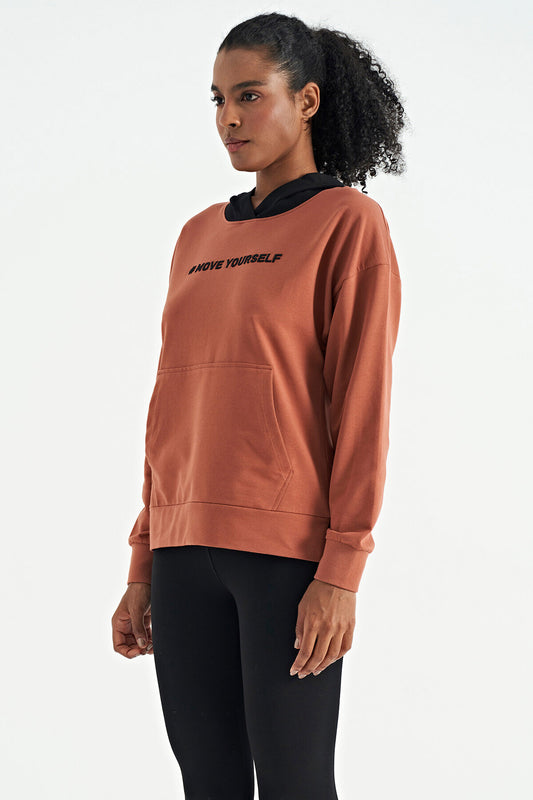 Cinnamon Women's Hooded Kangaroo Pocket Women's Oversize Sweatshirt - 97161