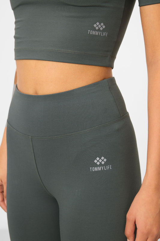 High Waist Capri-Crop T-Shirt Slim Fit Women's Tights Set - 95285