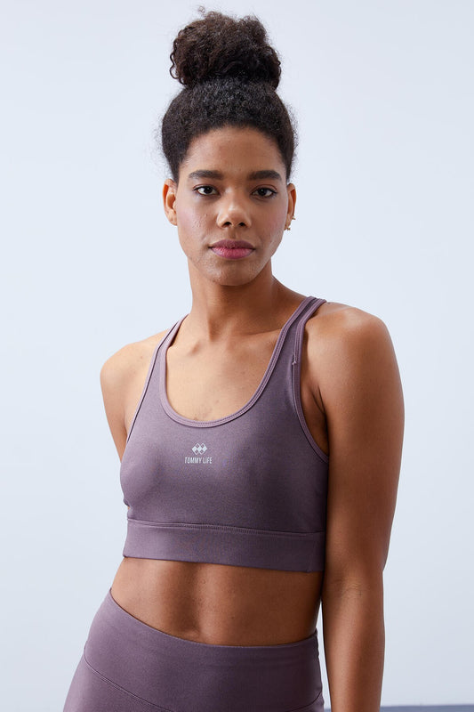 Dried Rose High Waist Wrap-up Cross Back Detailed Slim Fit Women's Tights Set - 95282