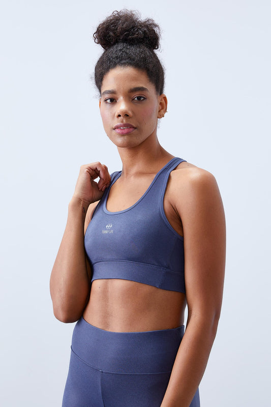 Indigo High Waist Long Sleeve Slim Fit Crop Top Women's Tights Set - 95286