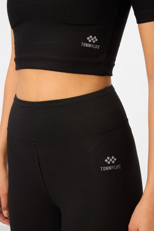 Black High Waist Capri-Crop T-Shirt Slim Fit Women's Tights Set - 95285
