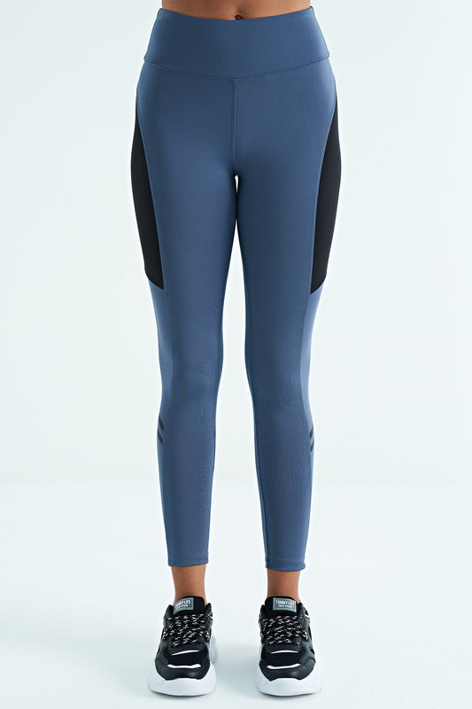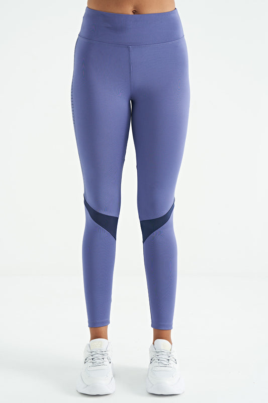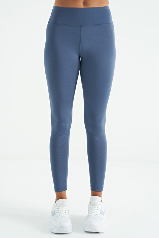 Indigo Logo Print Detailed High Waist Scuba Fabric Slim Fit Women's Tights - 94627