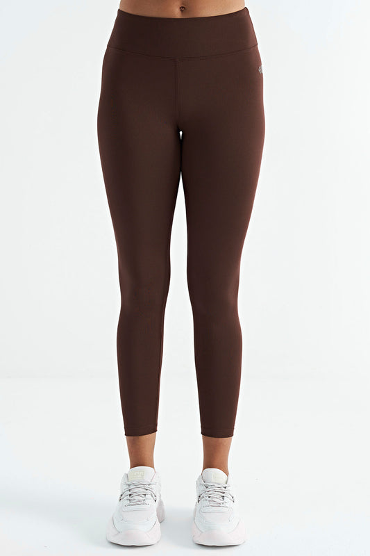 Brown Logo Print Detailed High Waist Scuba Fabric Slim Fit Women's Tights - 94627