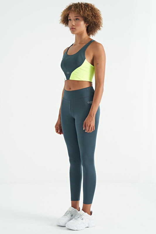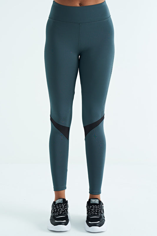 Petrol Strip Detailed Scuba Fabric Slim Fit High Waist Women's Tights - 94637