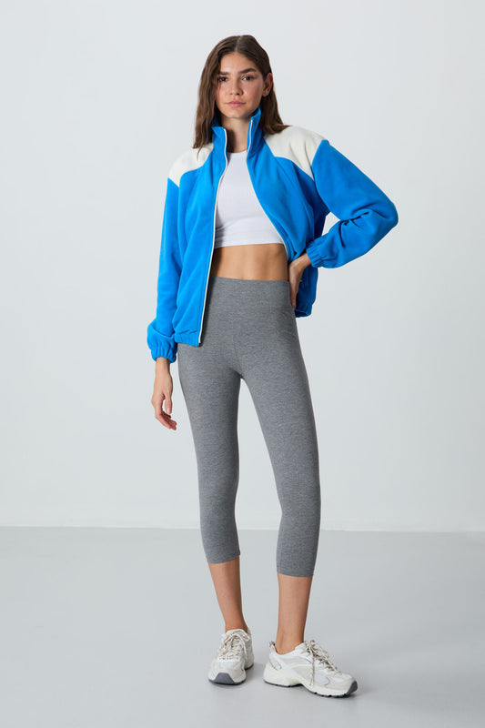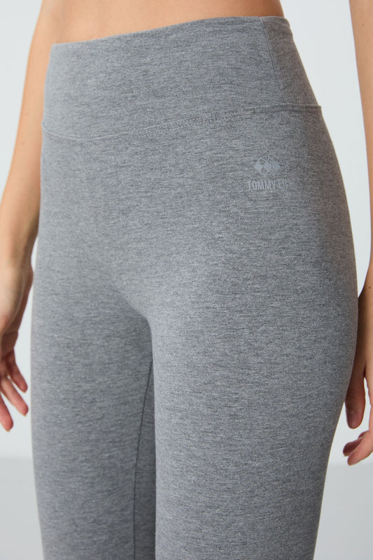 Grey Melange High Waist Slim Fit Tapered Leg Women's Capri Tights - 93097