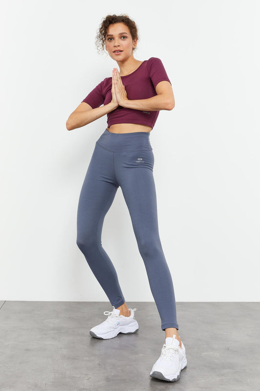 Grey Melange High Waist Wrap-up Slim Fit Skinny Leg Women's Tights - 94011