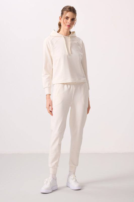 Ecru Hooded Oversize Women's Tracksuit Set - 95336