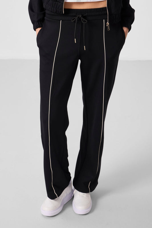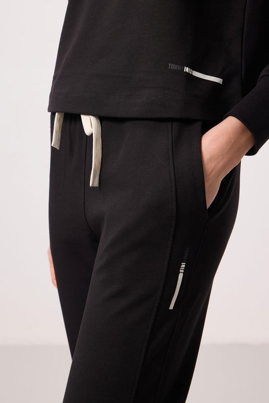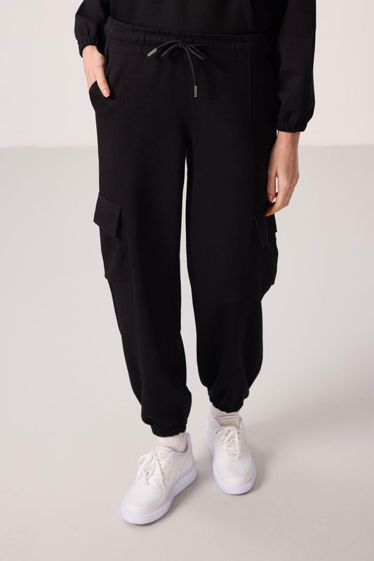 Black Soft Textured High Collar Oversize Elastane Women's Tracksuit Set - 95349