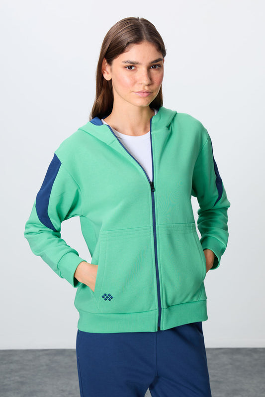 Oversize Women's Zippered Hooded Tracksuit Set - 95328