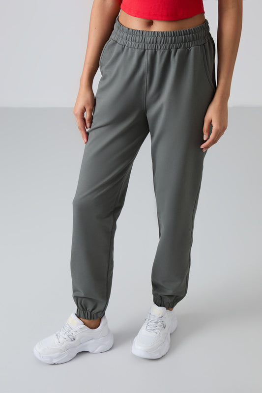 High Waist Comfortable Elastic Cuffed Women's Tracksuit Bottom - 94583