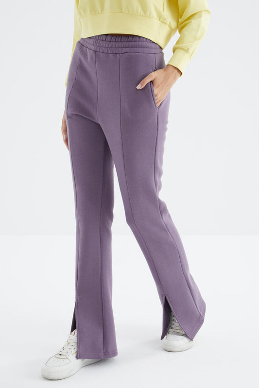 High Waist Front Slit Detailed Side Pocket Comfortable Fit Women's Tracksuit Bottom - 94625