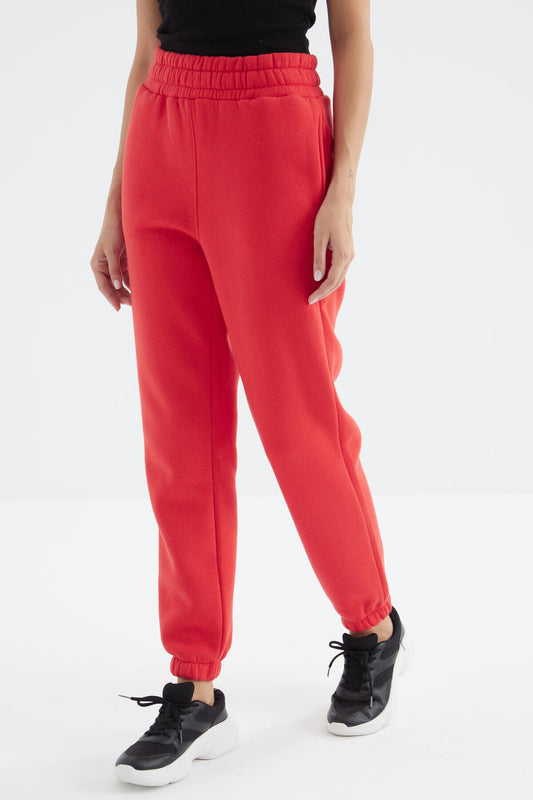High Waist Brushed 3-Thread Cotton Basic Women's Tracksuit Bottom - 94624