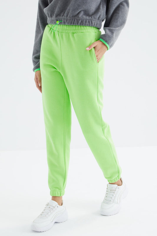 Green Pistachio High Waist Brushed 3-Thread Cotton Basic Women's Tracksuit Bottom - 94624