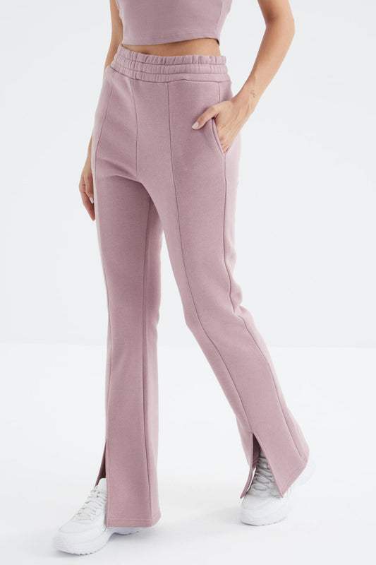Dried Rose High Waist Front Slit Detailed Side Pocket Comfortable Fit Women's Tracksuit Bottom - 94625