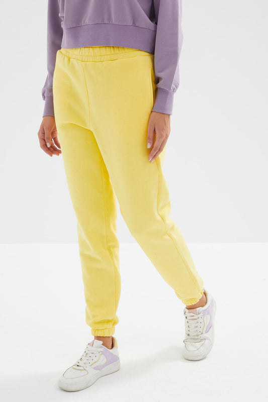 Lemon High Waist Brushed 3-Thread Cotton Basic Women's Tracksuit Bottom - 94624