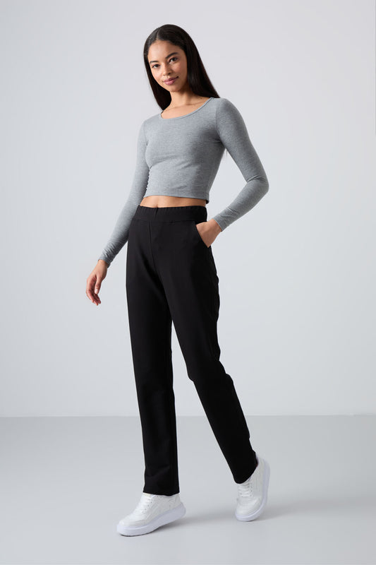 Black High Waist Comfort Fit Classic Leg Women's Tracksuit Bottom - 94185