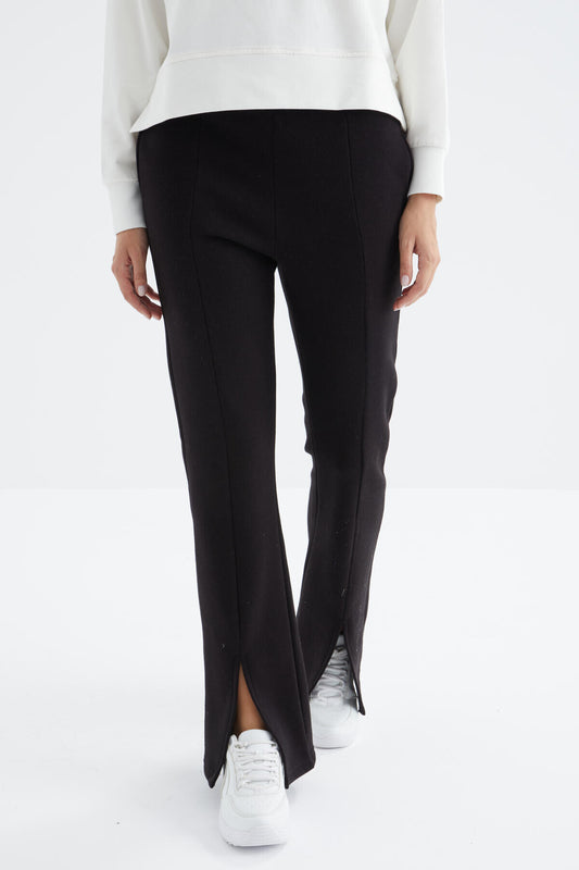 Black High Waist Front Slit Detailed Side Pocket Comfortable Fit Women's Tracksuit Bottom - 94625